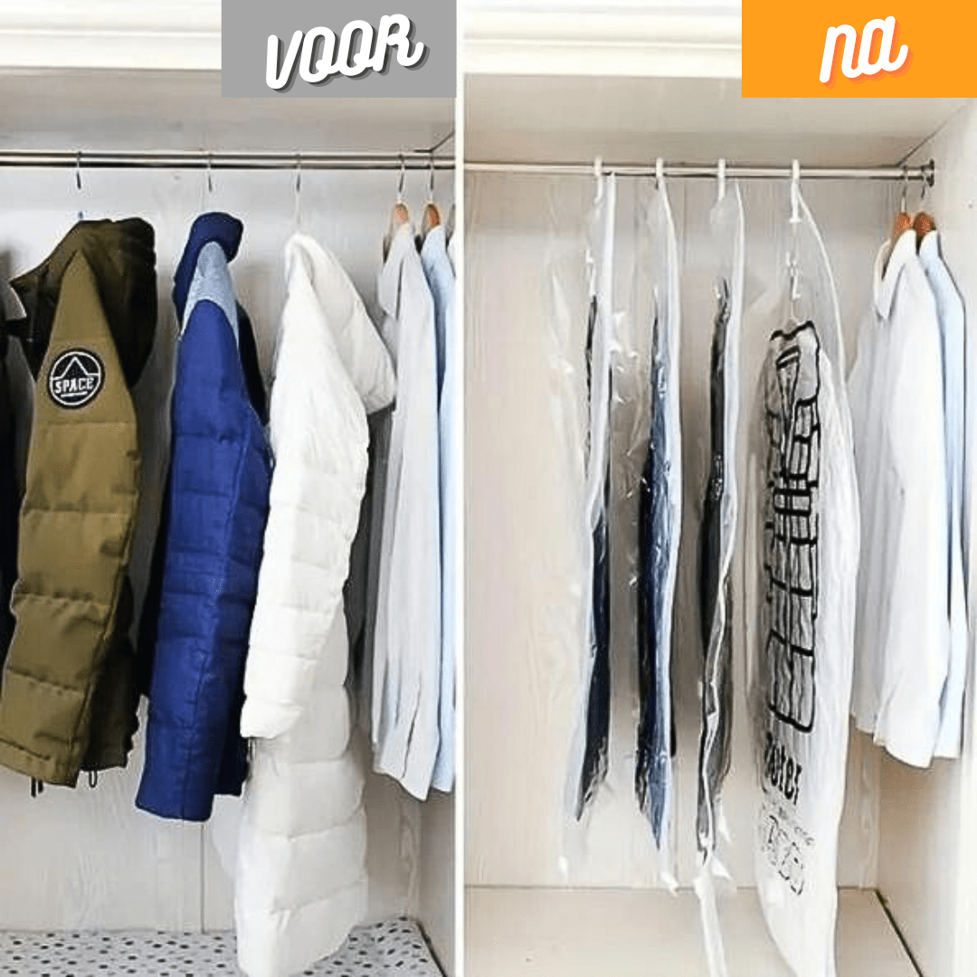 Maximaliseer het kastoppervlak: De CompressKeep™ tassen zijn een kastrevolutie, ze maken kostbare ruimte vrij door volumineuze items compact op te bergen. Geen volgepropte planken of rommelige kledingkasten meer, maar een netjes georganiseerd onderkomen voor uw kleding.