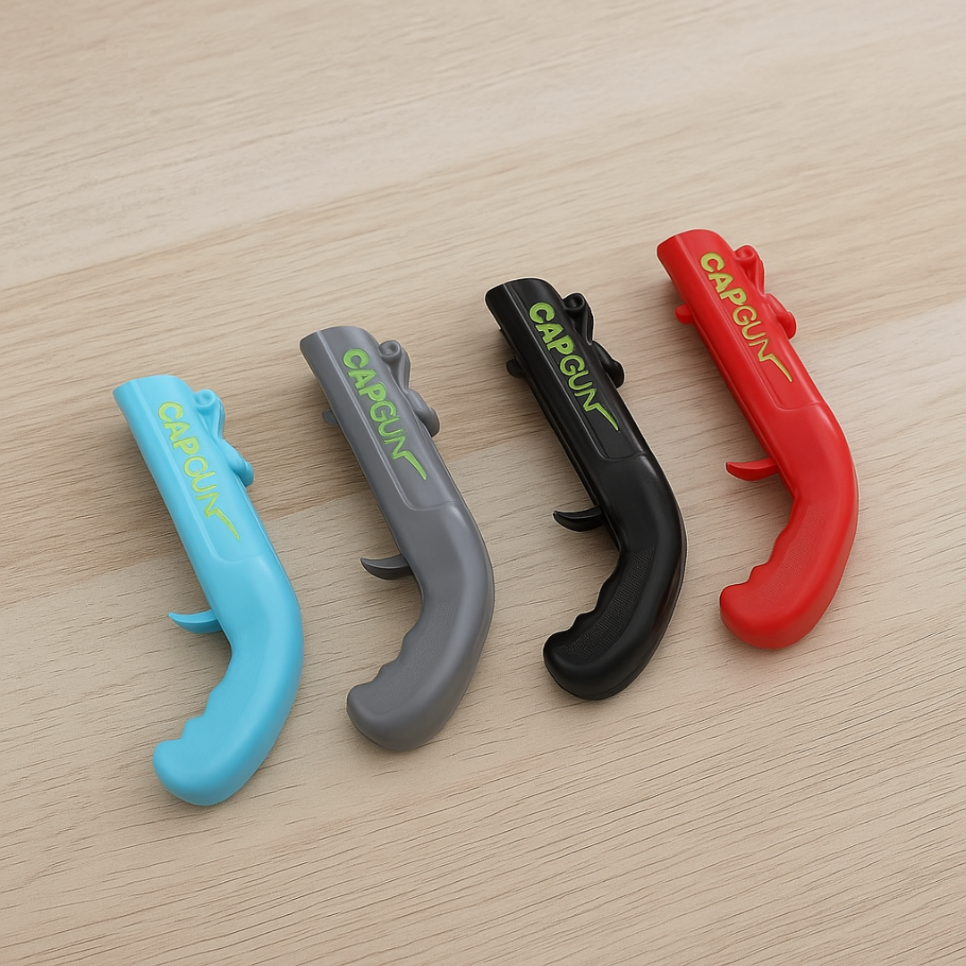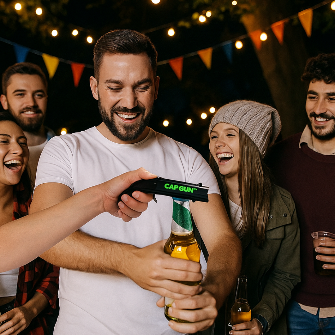 Met de CapGun™ hoef je nooit meer saai een fles te openen. Laat je creativiteit de vrije loop en geniet van een hilarische toevoeging aan je drankmomenten. Bestel nu en maak indruk op al je vrienden!