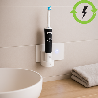 Moe van rommelige werkbladen en losse opladers voor je tandenborstel? Met de BristleBuddy™ | Ruimtebesparende Oplader zeg je vaarwel tegen chaos en onhandigheid in je badkamer. Deze tandenborstel wandoplader is de perfecte oplossing om je elektrische tandenborstel veilig en georganiseerd op te laden.